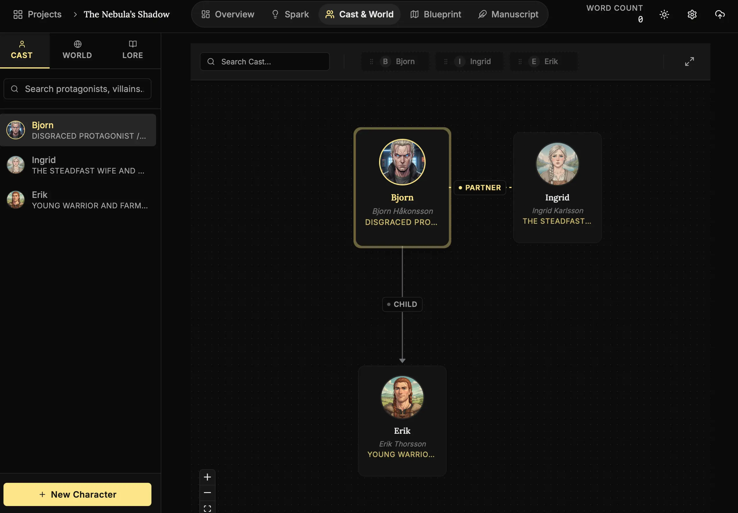 Drama is relational. Luke Skywalker is boring without Darth Vader (Father). The Genealogy Editor helps you map these bloodlines and rivalries.