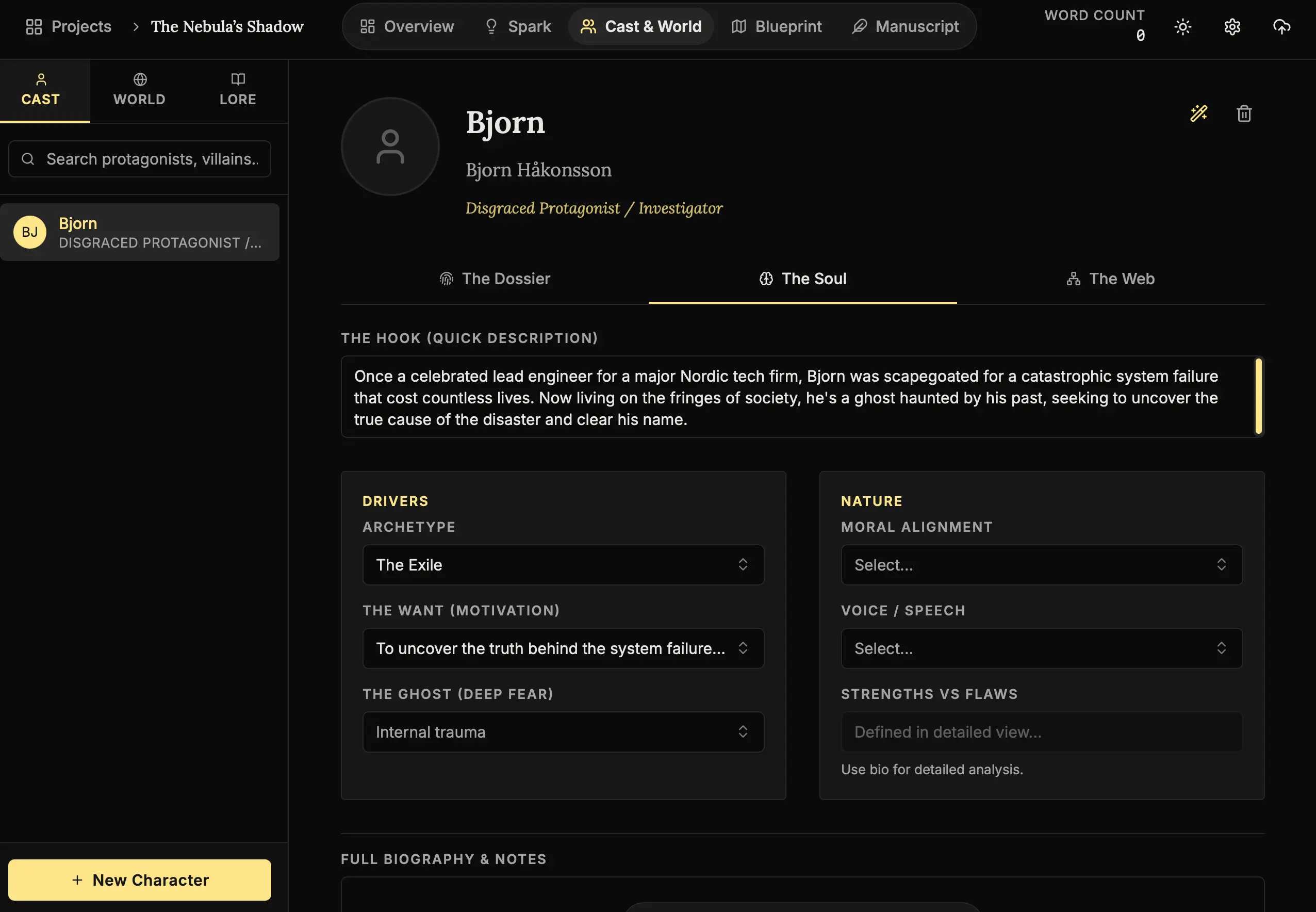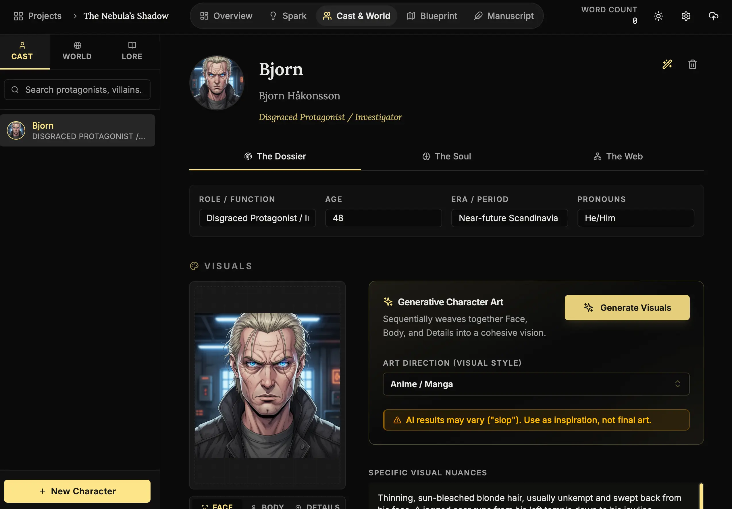 NovelOS approaches character creation differently. we don’t just ask what they look like; we ask what haunts them.