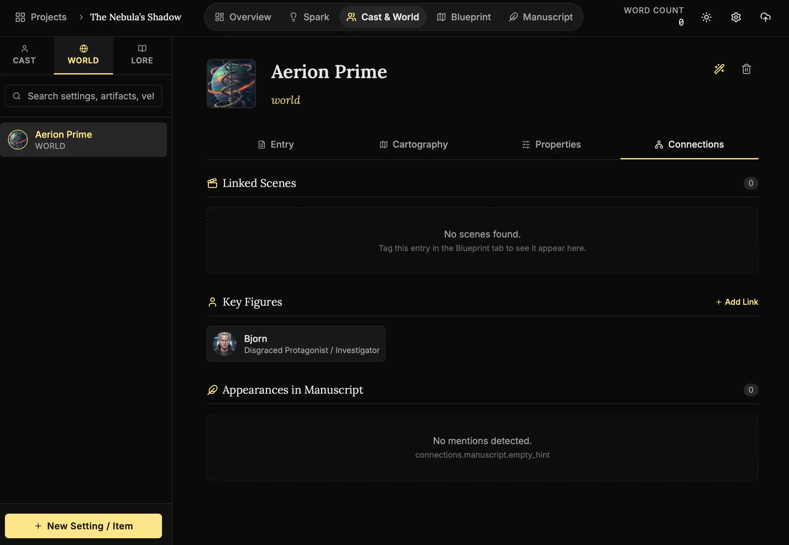 Use this for Secrets. Create a Lore entry called “The Secret of the King.” Link only the characters who know it. When writing dialogue, check the link. If a character isn’t listed, they cannot talk about the secret. It keeps your intrigue tight.