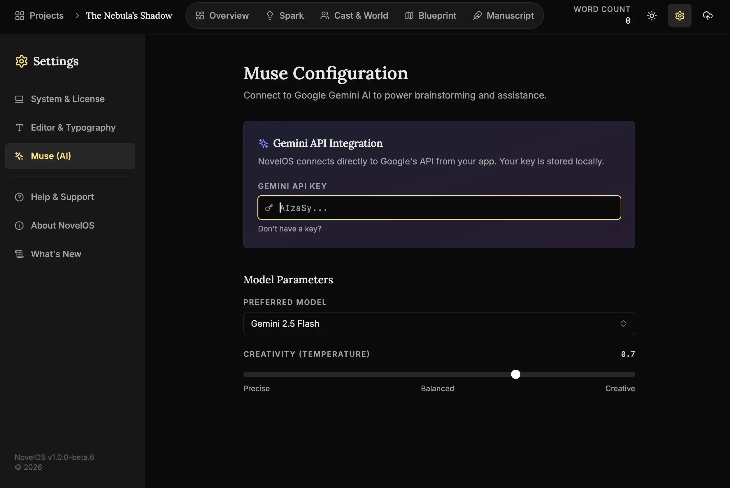 One of the most controversial yet powerful tools in NovelOS Studio is the Muse (AI Integration).